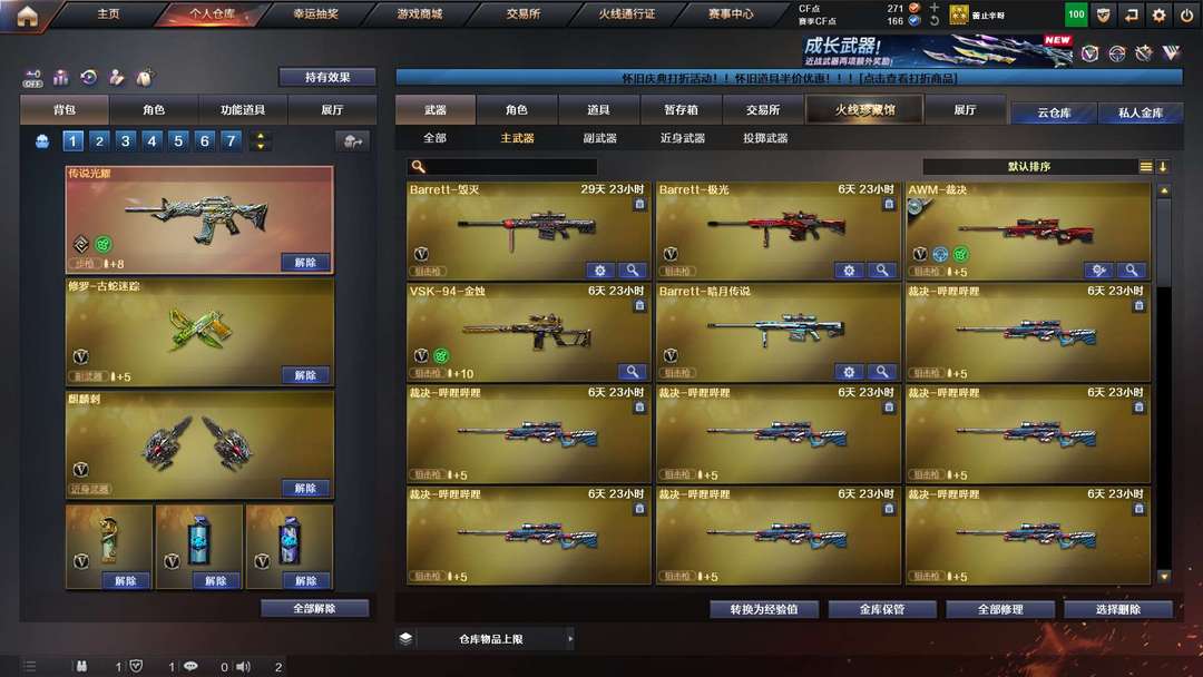 禁止利用账号进行开挂、使用辅助违规软件诈骗等违 规操作。Barrett-暗月传说/AWM-裁决/M4A1-死神/AK12-天启(2)/AK47-火麒麟/AK47-无影/无影-神兵利器/QBZ03-金色蔷薇/汤姆逊-烈龙/沙鹰-天神/麒麟刺/屠龙/烟雾弹-竞技荣光/闪光弹-竞技荣光(2)/机械迷城-穹宇/金色蔷薇-古蛇迷踪/QBZ191-银翼游侠/黑武士-锦绣游龙/魂·QBZ03-金色蔷薇-古蛇迷踪/修罗-古蛇迷踪/龙啸-烈火龙威/唐刀-古蛇迷踪/高爆手雷-古蛇迷踪/烟雾弹-古蛇迷踪