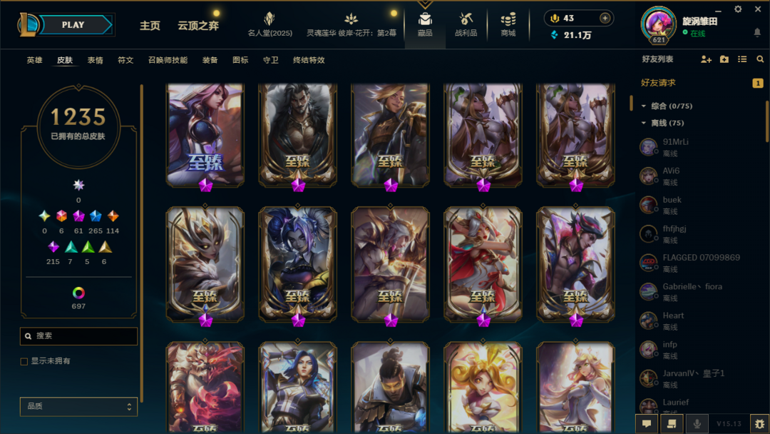 黑色玫瑰1200原皮❤️战斗学院全❤️玉剑劫男刀❤️白衣龙瞎❤️黑夜亚索❤️幻灵战队❤️青铜白银