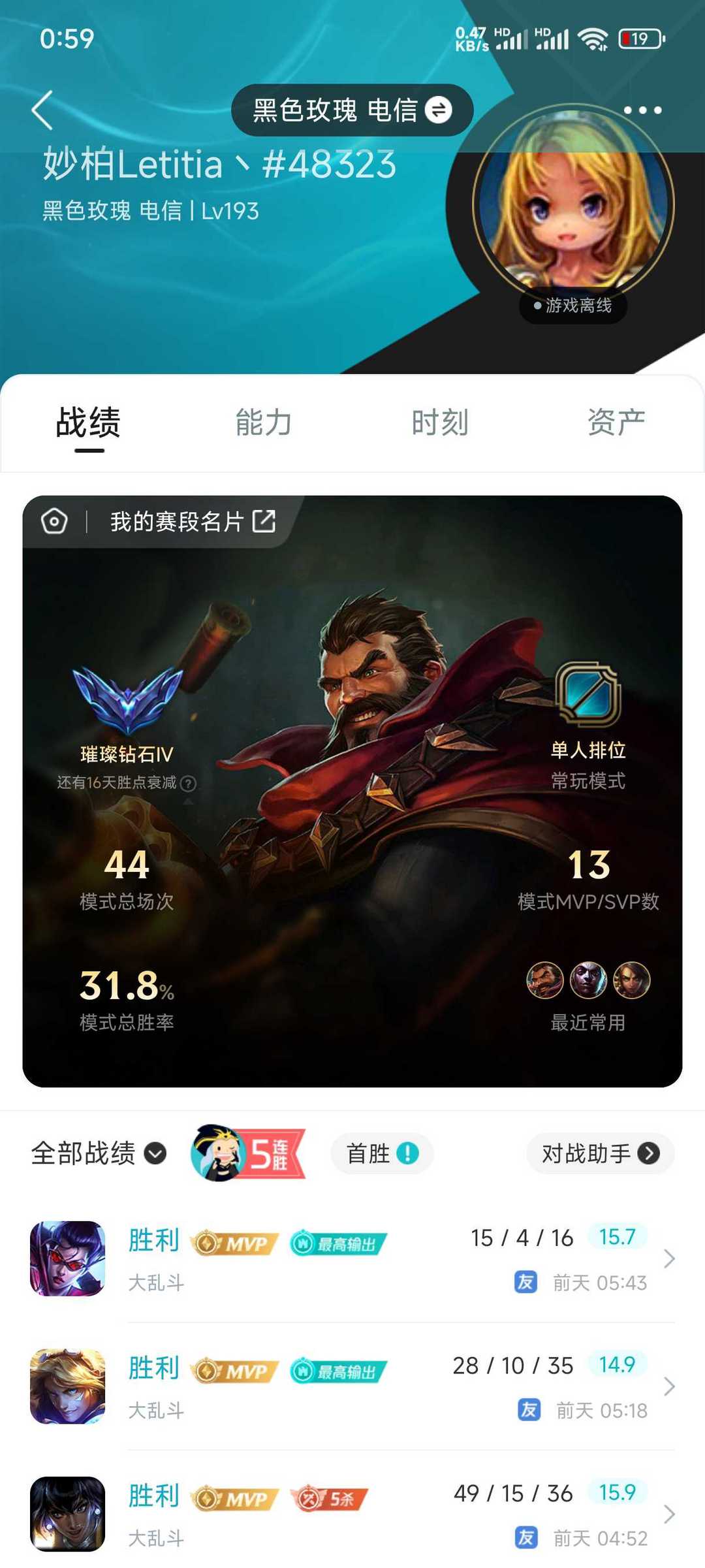 钻3可排位⭐抵抗军杰斯娜美锦鲤⭐大乱斗隐藏分很低人机局乱⭐elo匹配负胜率