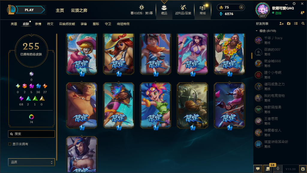 【推荐店铺】300皮肤⚡大元素拉克丝⚡DJ琴女⚡泳池全套⚡【萌妹角色妹子号】可排位⚡【推荐包天】