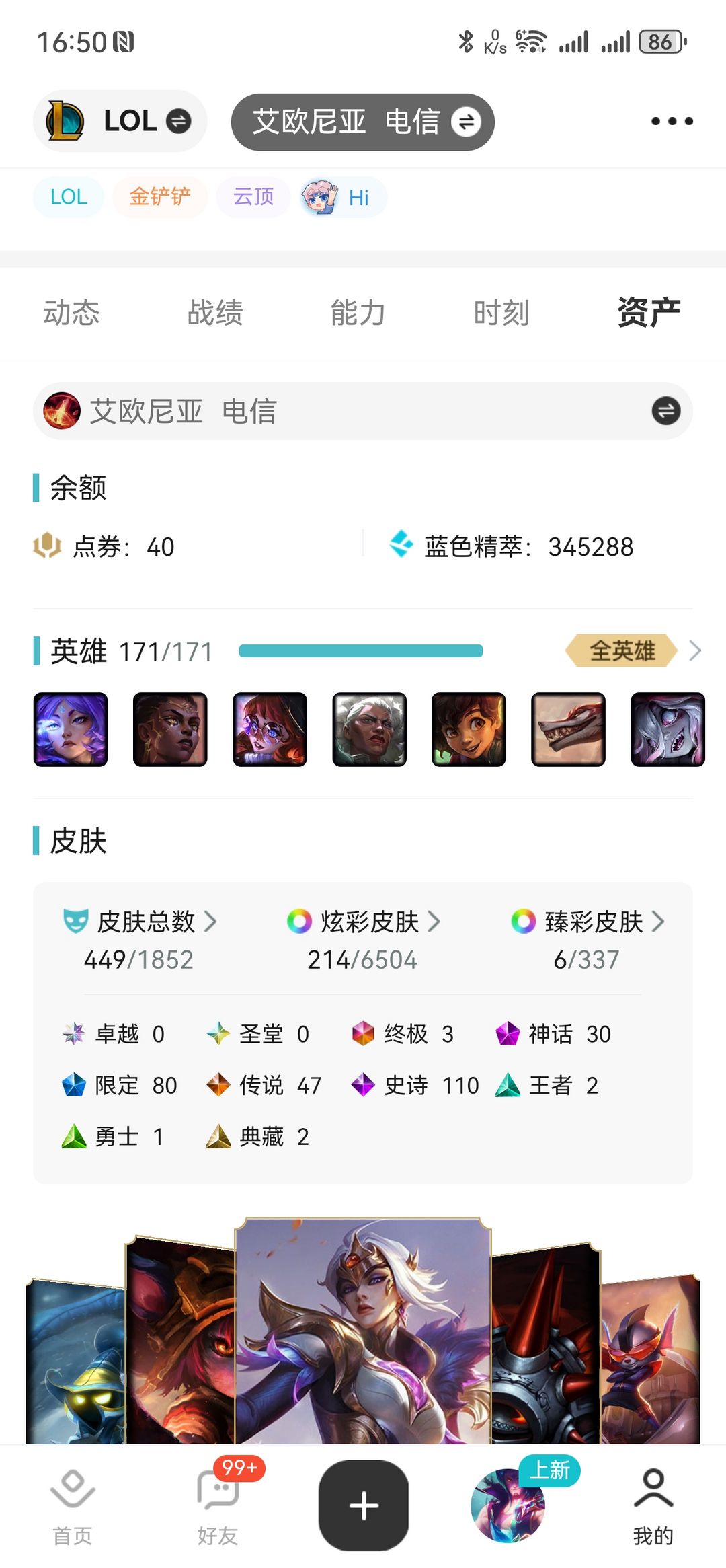 449原皮214炫30神话=双城之战2凯特琳=EDG套=玉剑双刀=星环灵风迦娜=炎龙瑟提=神王诺手