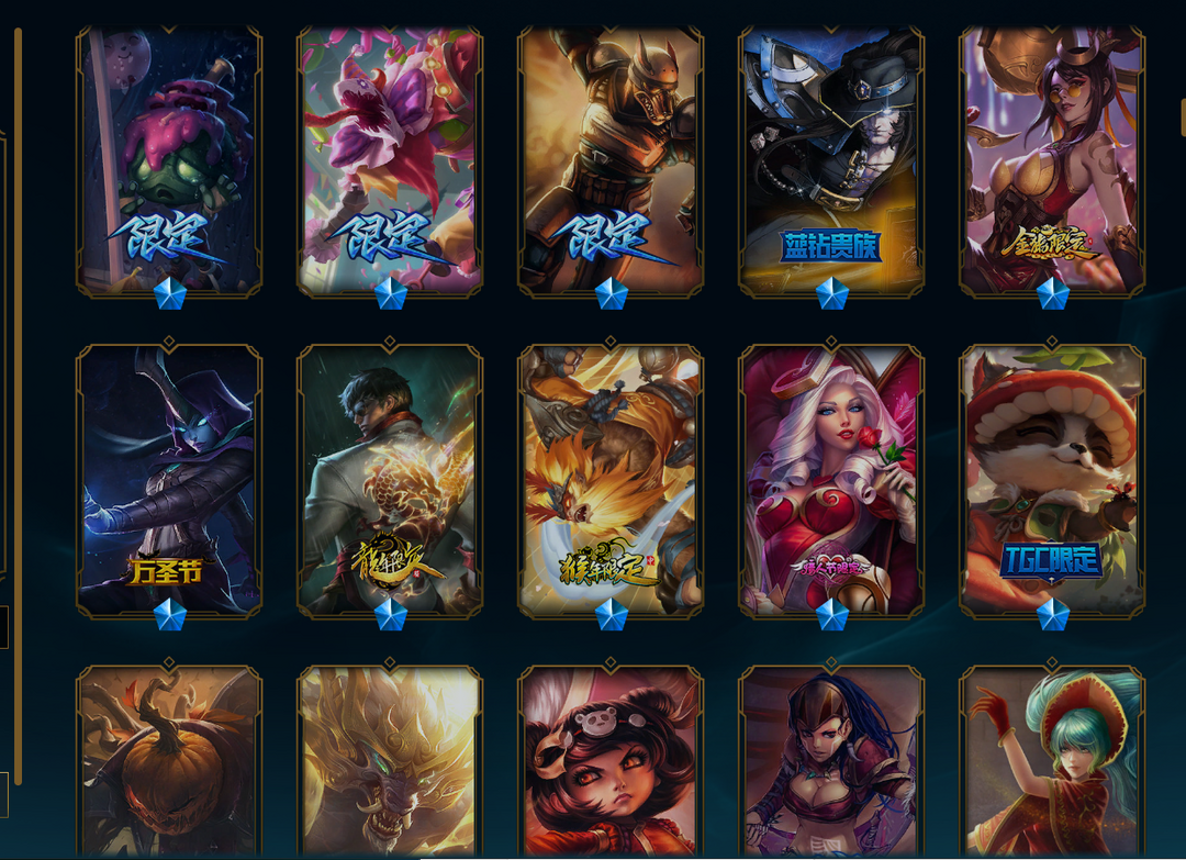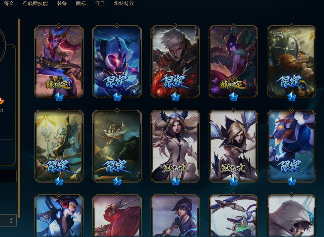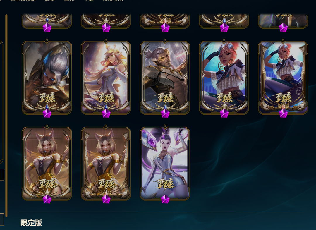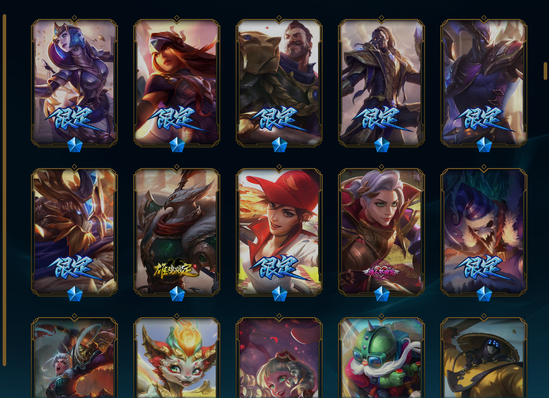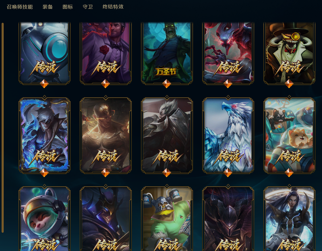 皮肤数量687+神话23+传说61+终极1+限定106+史诗169