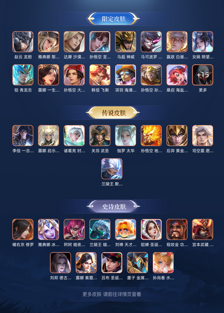 至尊宝,李白无双,露娜全皮,后羿皮肤