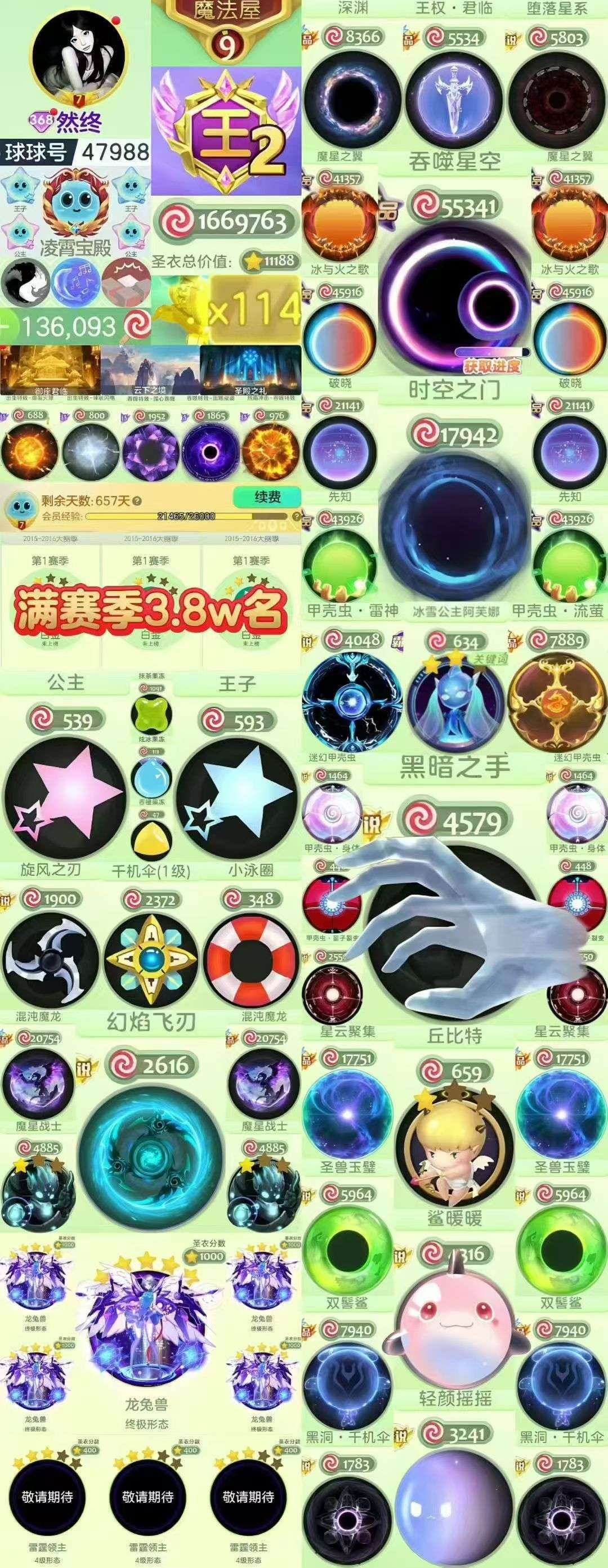 满赛季3.8万排名❤️王子公主 阿芙娜 ❤️黑暗之手 幻化人手 ❤️老款甲壳虫 流萤幻化甲壳虫时空之门、破晓 ❤️丘比特 魔星玉璧、水滴泳圈抹茶、年卡、满级龙兔兽
