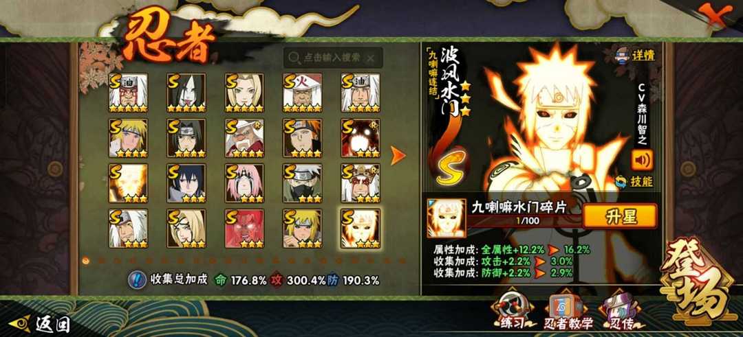 巳月九喇嘛水门机械鸣人神农须佐卡卡西须佐止水鲨玛特皮肤53S 永恒佐助三代风影2980万⚡忍战满配