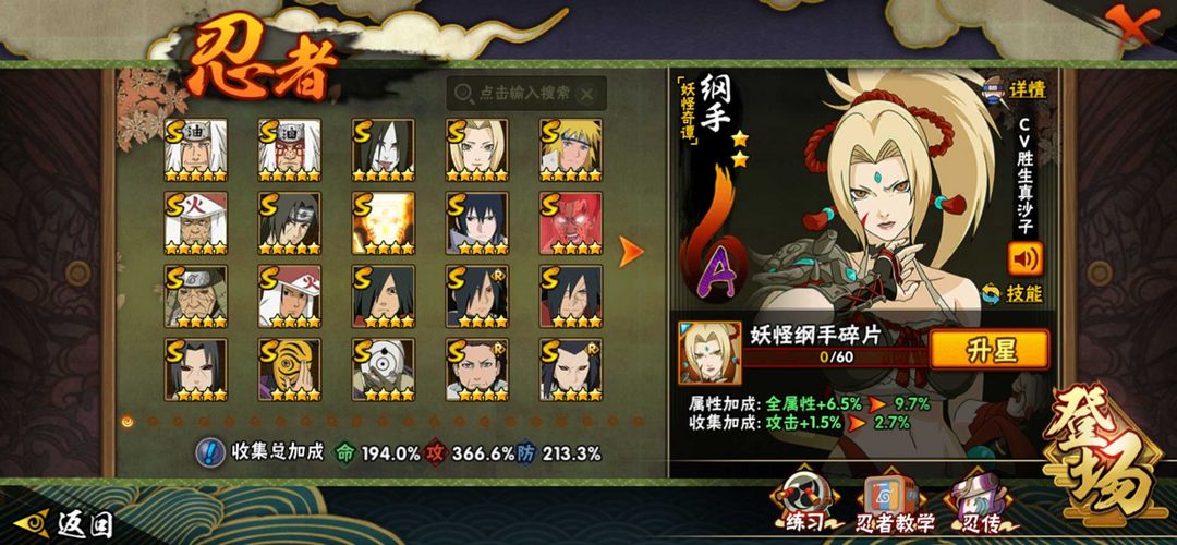 妖怪纲手⭐会谈斑全套⭐侠影佐助全套⭐648奥义⭐413全忍者⭐全时装⭕3800W⭕全通灵