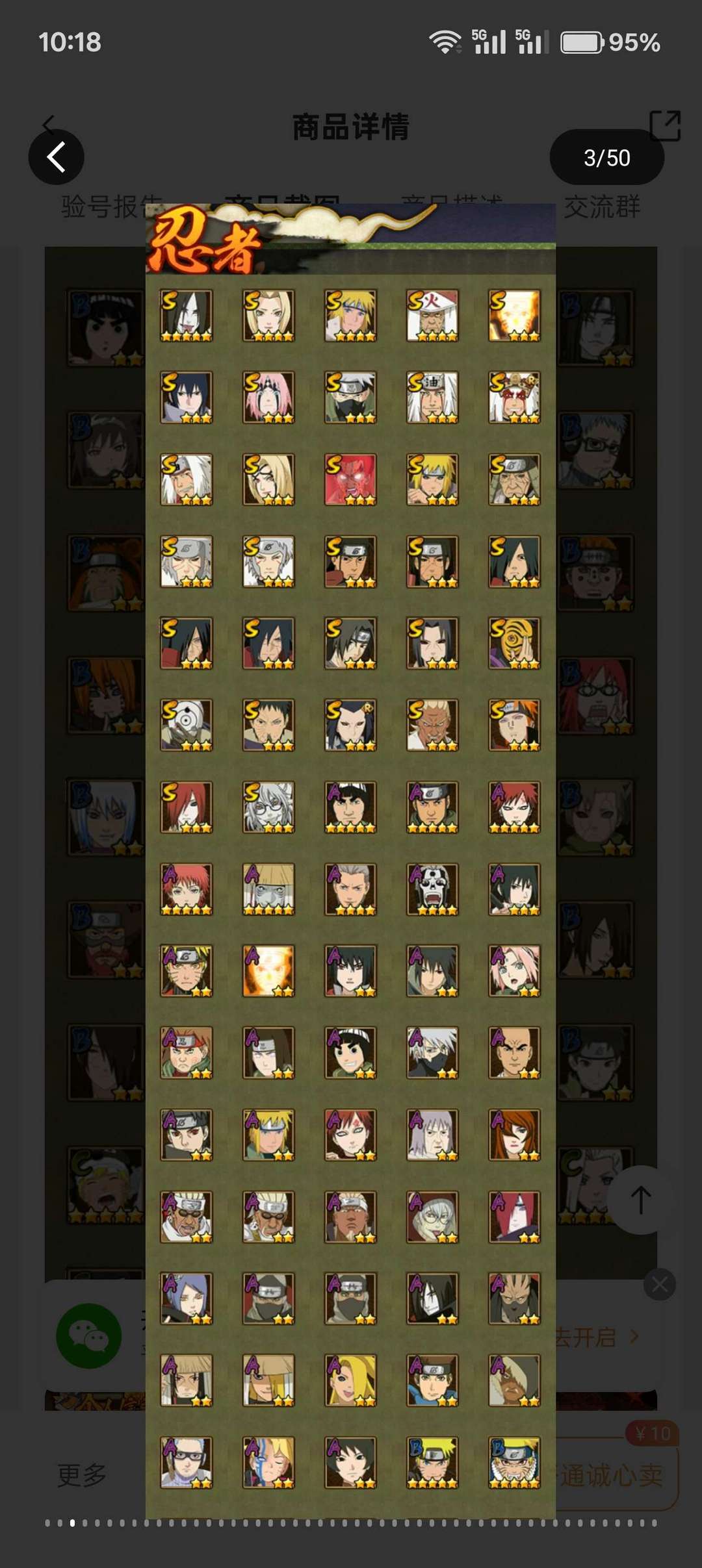 S忍:九尾水门,传说中的三忍自来也,天道佩恩,死门迈特凯,秽土转生波风水门,千手柱间(普通),神秘面具男(普通),秽土转生宇智波鼬,舞之豪杰自来也,秽土转生千手柱间,白面具宇智波斑,须佐能乎旗木卡卡西,4星波风水门(普通),九喇嘛连结漩涡鸣人,忍界大战艾,4星猿飞日斩(普通),秽土转生宇智波斑,秽土转生三代目风影,秽土转生猿飞日斩,仙人药师兜,秽土长门,5星大蛇丸(普通),自来也(普通),4星纲手(普通),千手扉间(普通),永恒万花筒宇智波佐助,宇智波斑,忍界大战宇智波带土,须佐能乎宇智波鼬,百豪纲手,秽土转生千手扉间,秽土转生解宇智波斑,忍界大战春野樱;A忍:5星迈特凯,5星猿飞阿斯玛,5星疾风传我爱罗,5星蝎,5星干柿鬼鲛,4星飞段,4星死司凭血飞段,须佐能乎宇智波佐助,秽土再不斩仙人模式漩涡鸣人,九尾查克拉漩涡鸣人,万花筒写轮眼宇智波佐助,宇智波泉奈,百豪春野樱,忍界大战秋道丁次,忍界大战日向宁次,忍界大战李洛克,万花筒写轮眼旗木卡卡西,地陆,宇智波止水,青年波风水门,忍界大战我爱罗,近松十人卫千代,五代目水影照美冥,奇拉比,忍界大战奇拉比,青年艾,半蛇斗篷药师兜,青年长门,小南
