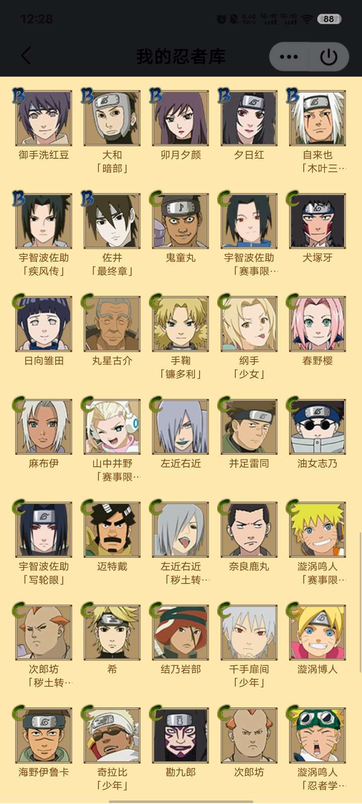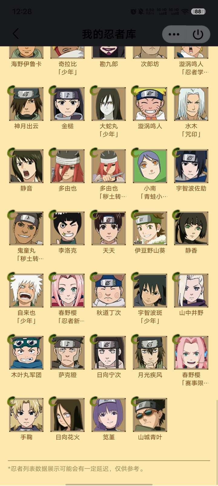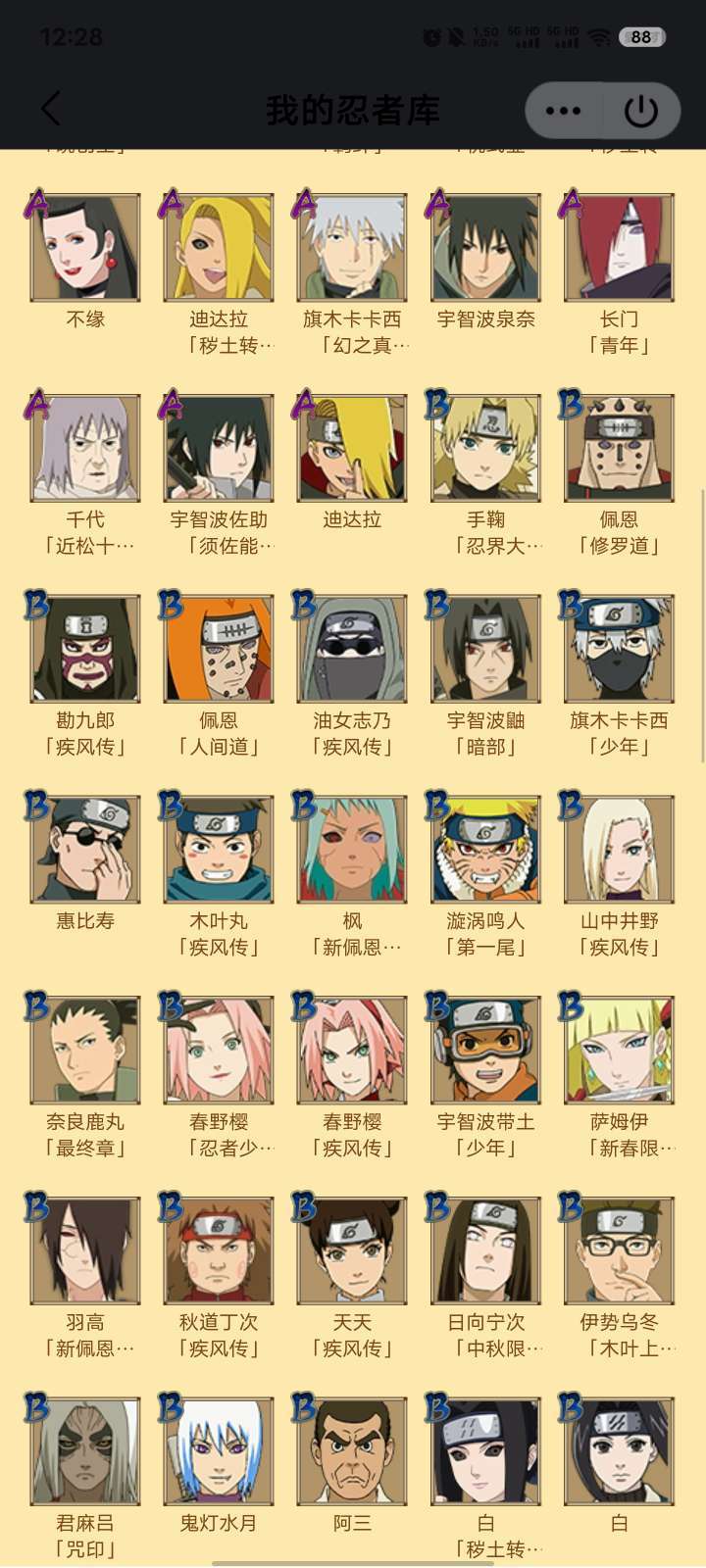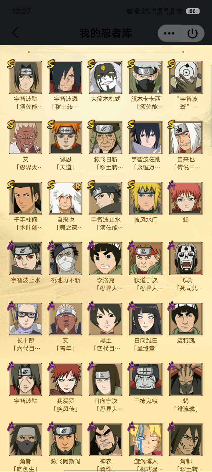 白面具,传说自来也,须佐止水,创立柱间,须佐卡卡西,忍战雷,死三,桃矢,再不斩,忍战李,桃博,神农