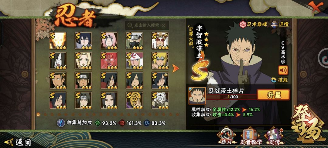 1100w战力满级霸体超哥白面破面忍战雷死水解斑须佐卡30s40a
