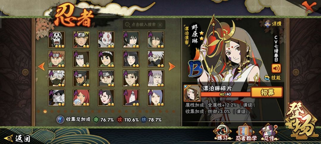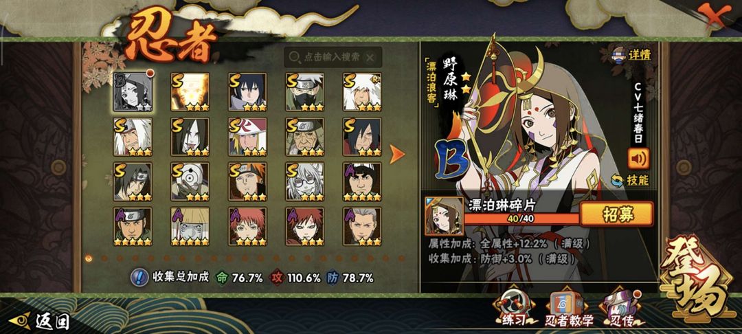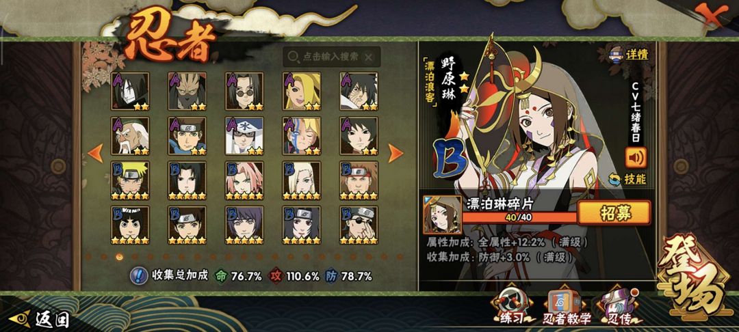 自用号,忍者不多但是够用,打决斗场想买老忍者的可以租着玩玩体验一下