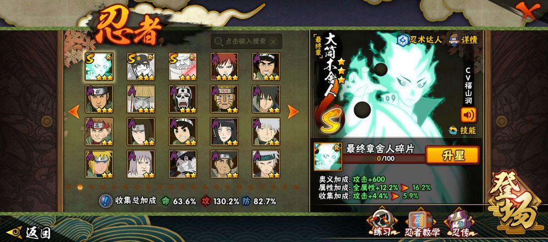 段位暗部1 有宇智波佐助永恒万花筒 宇智波斑白面具 神秘面具男红夜之刃 大筒木金式 波风水门百战