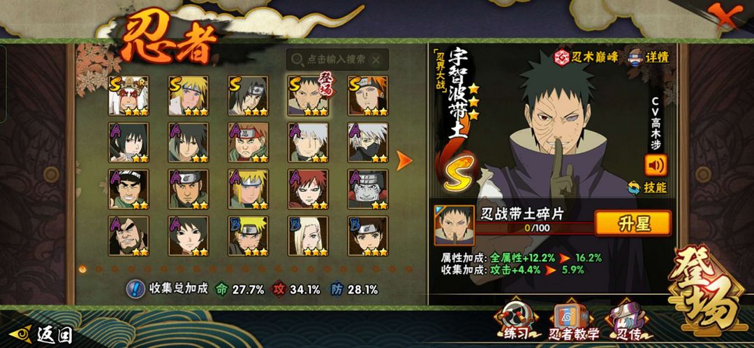 有 忍战带土,须佐鼬,百战佩恩,幻卡,神农,近期还会多机械鸣人