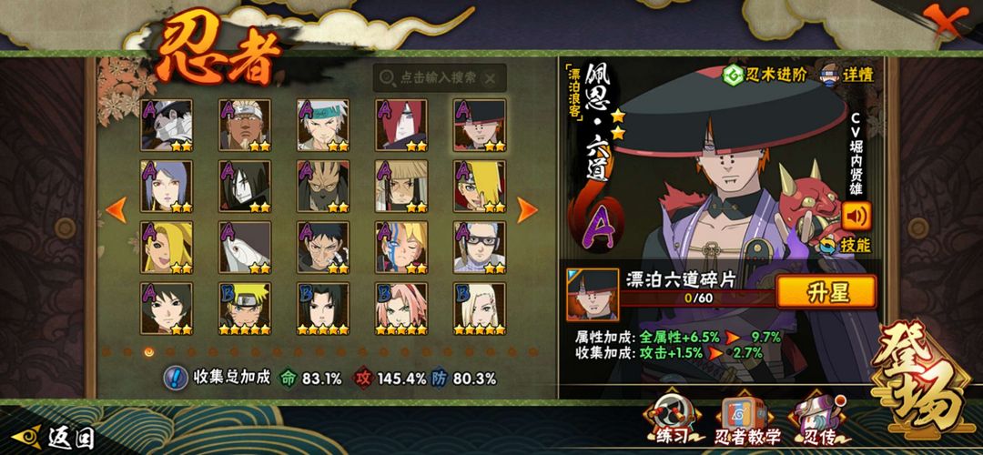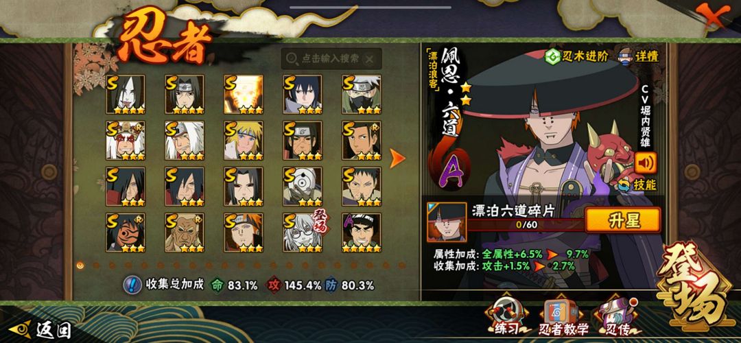 148级,V11,19S,37A,185忍,9级霸体,多个氪金A,忍法帖:创立柱间、三带雷、红夜面具