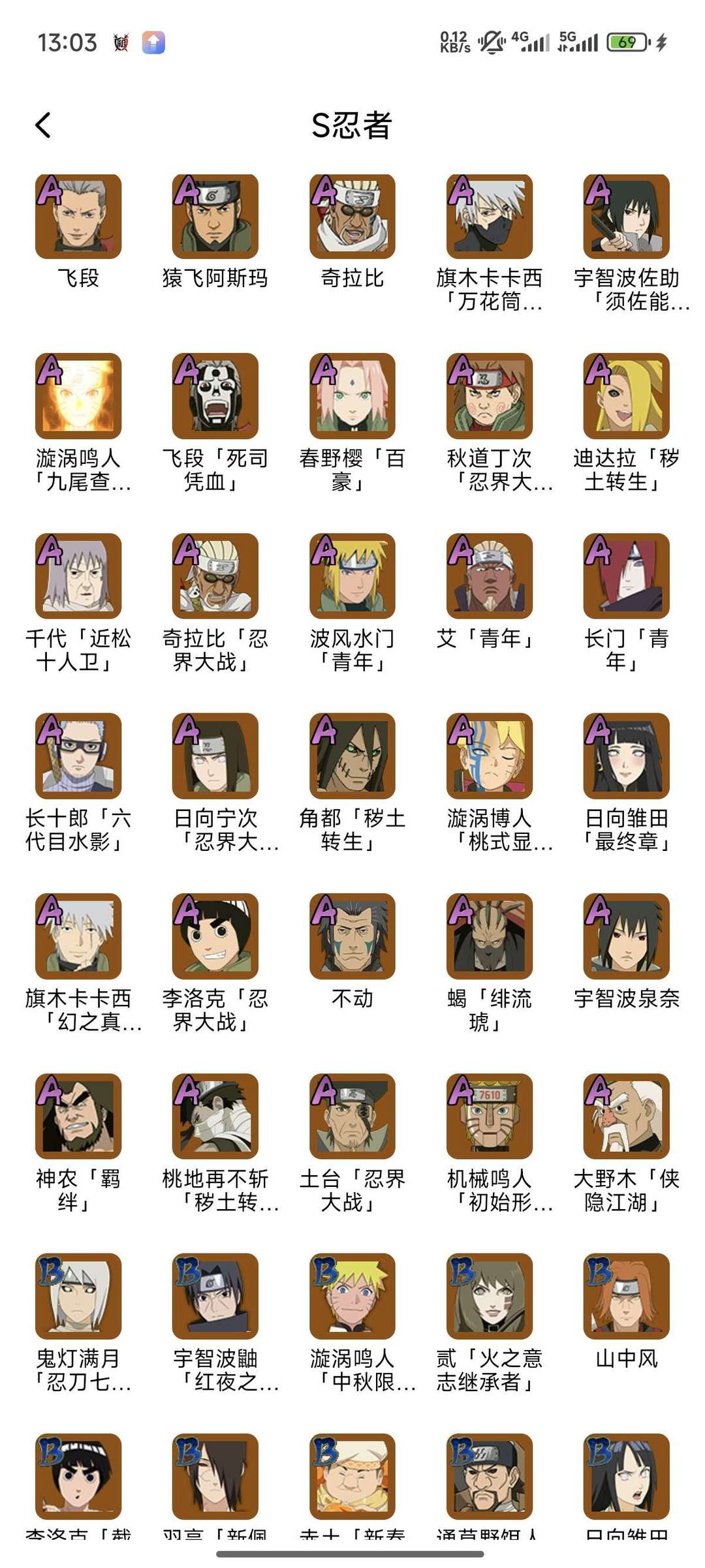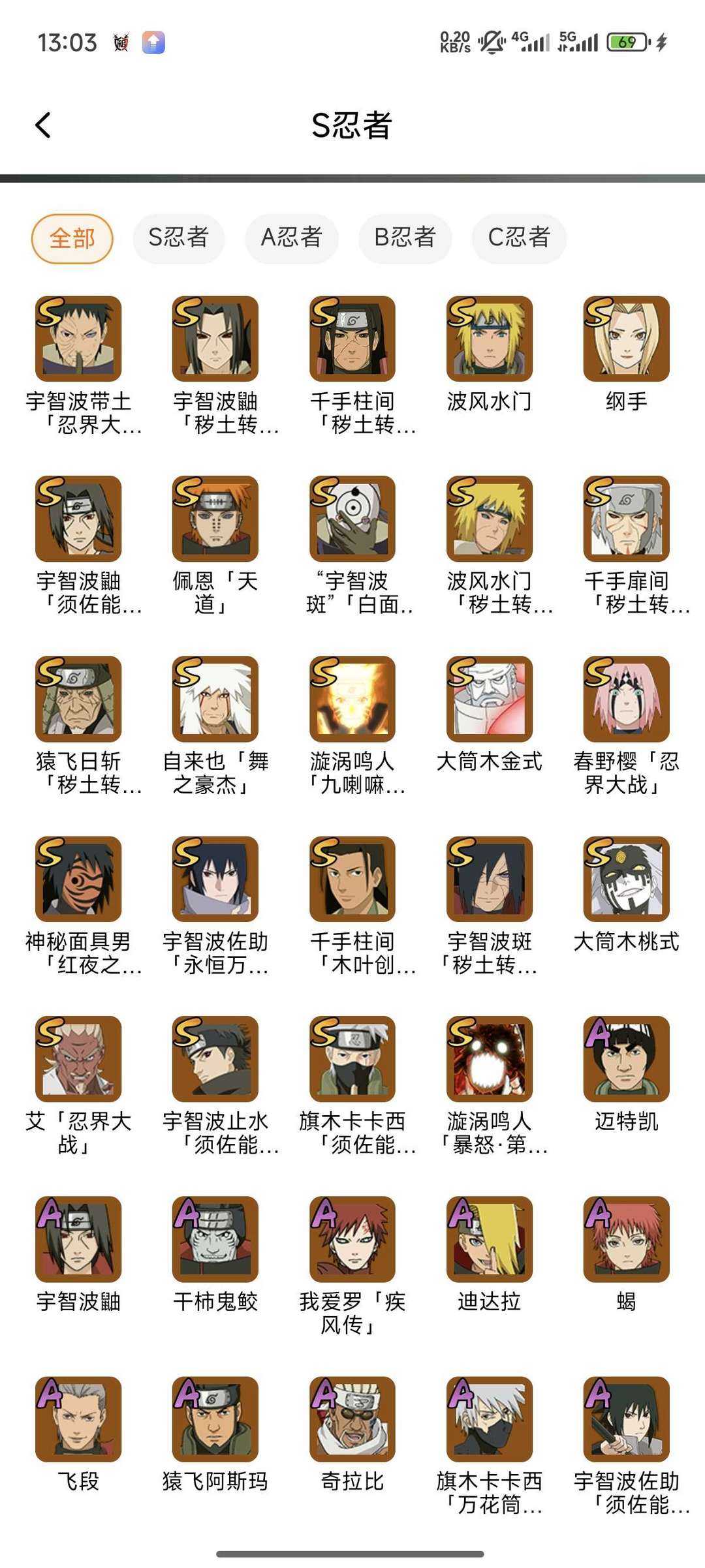 24S忍,秽土四代,忍战带土,几个忍法帖,黄猿紫狗,有熊猫,战力1480W。