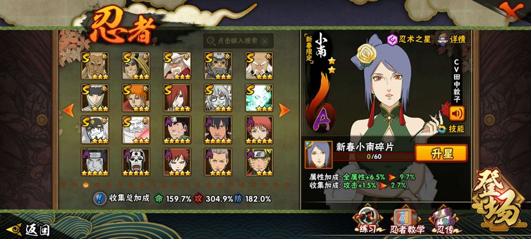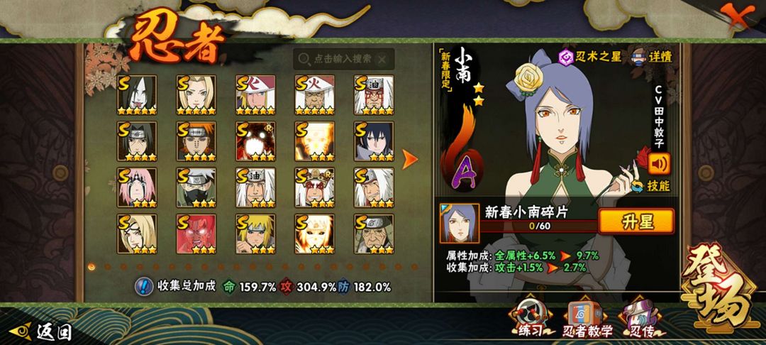 全高招忍者,全忍法帖s忍,各种点券忍者也基本有,组织忍者也都有