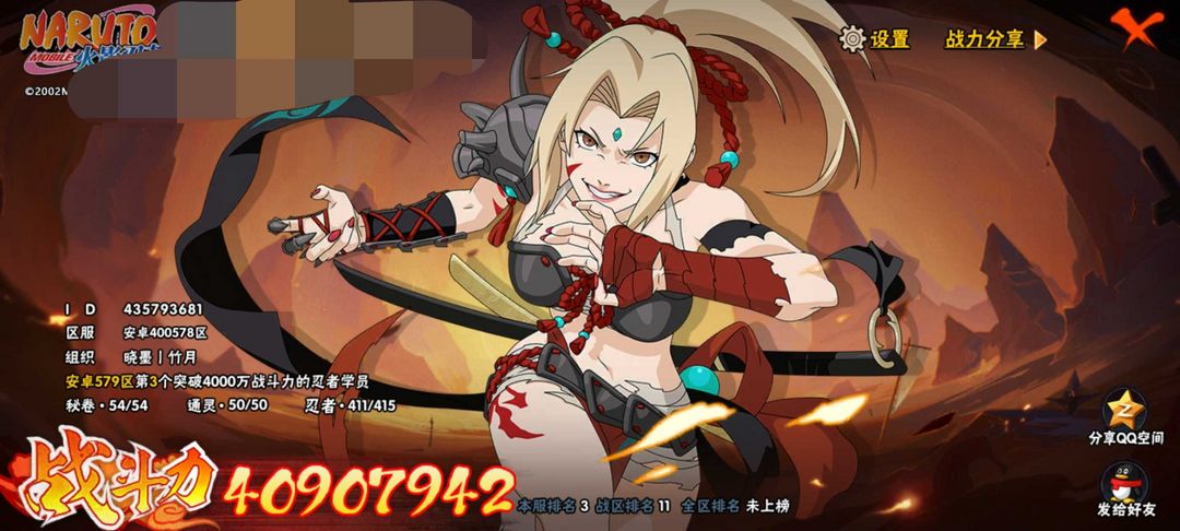 【安卓579区,战斗力4000万,攻击力480万,全S全A全部408忍者已经招募,全奥义全时装,秘卷全有,且霸体散等热门密卷都是满级效果,全通灵,熊猫、螃蟹、二尾、金乌、鳶、蛤蟆文太、蛞蝓和守鹤应有尽有等,具体请查看截图。】