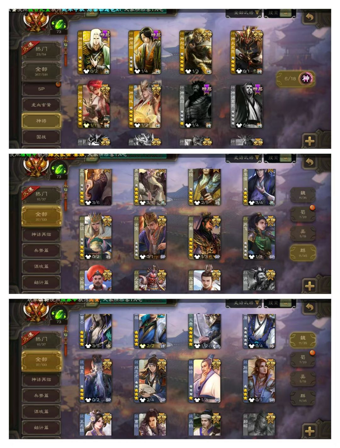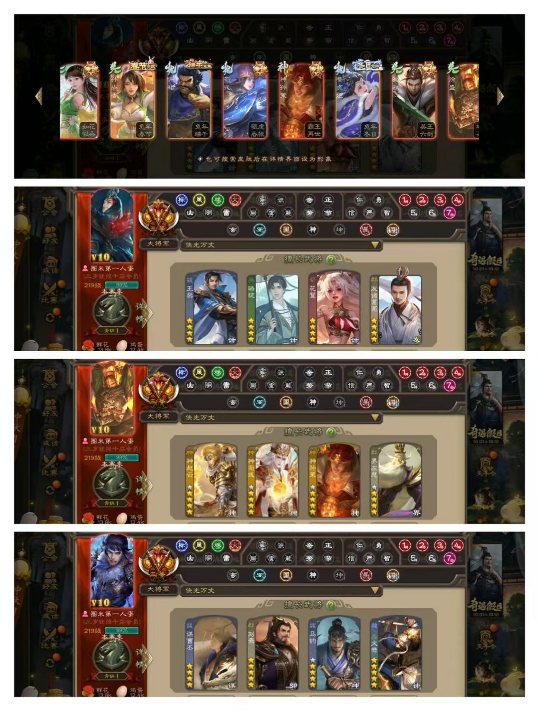 官方三等大将军,无卡,VIP10! 15四星玉龙:回廊双形态动文鸯,回廊动神孙策,回廊动马钧,动刘焉动神荀彧动谋曹丕动界左慈动王璨动花鬘,友诸葛亮! 37史诗武将,回廊动界徐盛,动神赵云动戏志才动界李儒,王元姬等! 37动皮95金皮200国战皮肤!