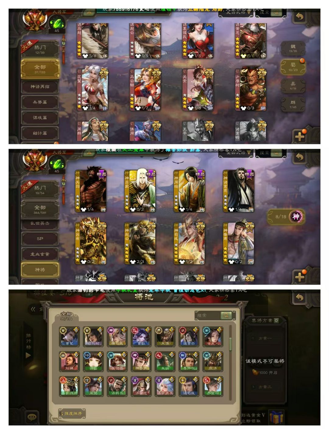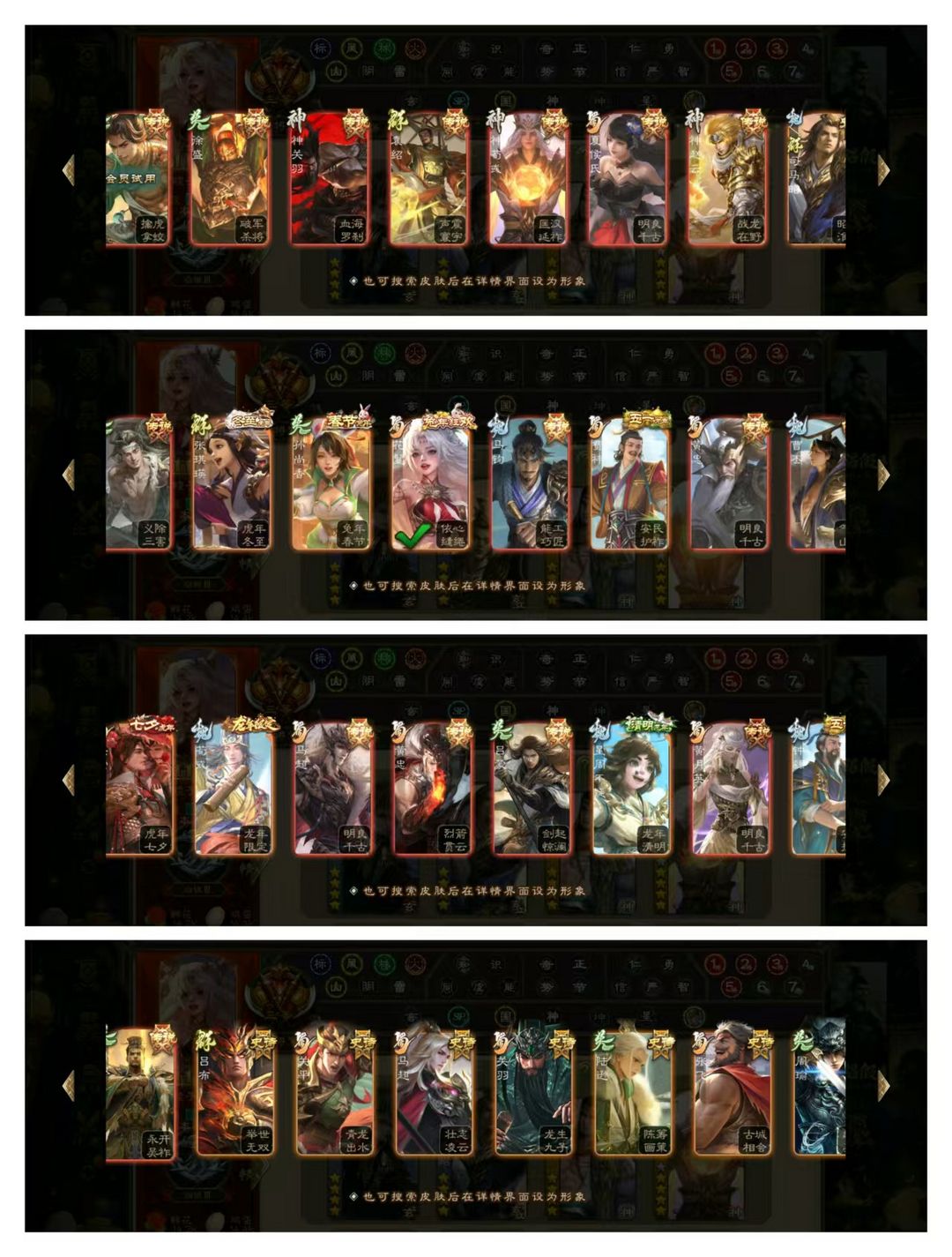 官方三等大将军,无卡,VIP11! 10四星玉龙:回廊动神荀彧,回廊动谋黄忠,回廊动马钧,回廊动谋马超,动谋夏侯氏动司马昭,曹髦神鲁肃! 37史诗武将:回廊动界徐盛,动谋曹丕动神赵云动周处,界左慈谋孙策王元姬界钟会周群神吕布,谋黄月英谋大乔谋小乔谋荀彧谋张飞! 28动皮75金皮175国战皮肤!