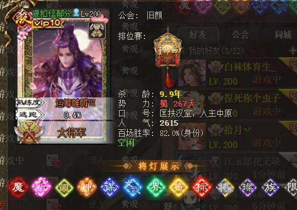 魔灯、祈福灯谋灯全亮了的 强将都有动皮绘卷皮肤除了小乔都拿了 换将卡用完了介意勿拍,禁止以任何方式购买违者直接拉黑扣押金。 后台数据看到顶号逃跑乱用道具一律直接顶号改密拉黑。 高价就是线下租了 想低价租可以看游戏内私聊或+lle34199