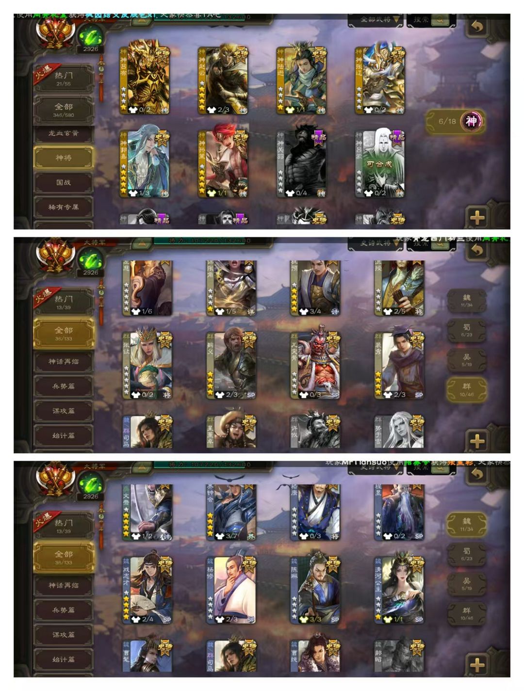 有卡【37史诗大将军】双形态动神郭嘉动杜预*动谋关羽动文鸯动神孙策动谋陆逊*张奋曹髦势陆郁生鲍信