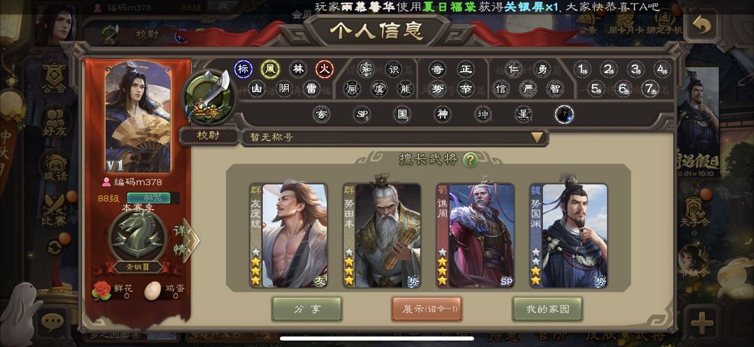 租号需知: 1.幻熊租号的所有号均为官方版本,可在三国杀移动版公众号内下载。 2.请各位租客不要在游戏过程中逃跑,不要有恶意语言伤害等等行为,如经发现,我们将会根据扣分时间来找到扣分玩家,进行永久拉黑。 3.请不要动用号内的改名卡,元宝,浆糊,羽毛,宝珠等除常用道具卡之外的物品,如经发现,我们也将进行永久拉黑。 谢谢大家对幻熊的支持,希望大家游戏愉快,生活愉快!