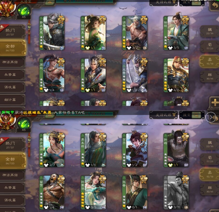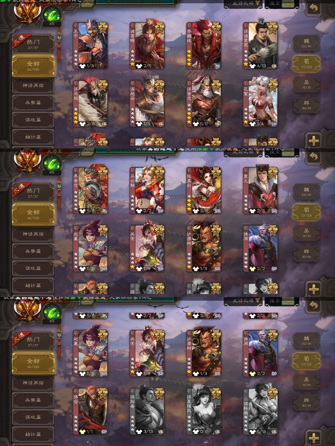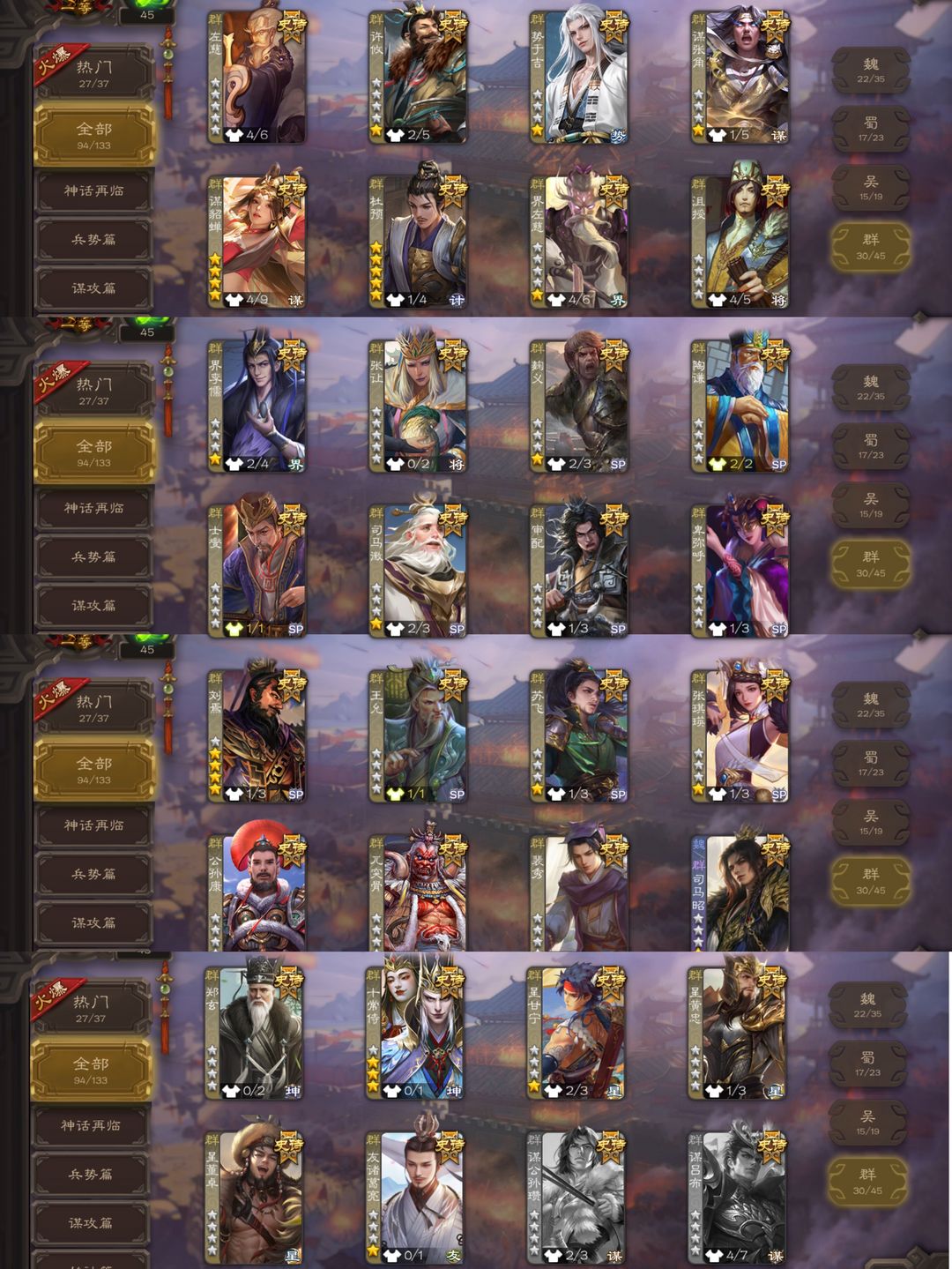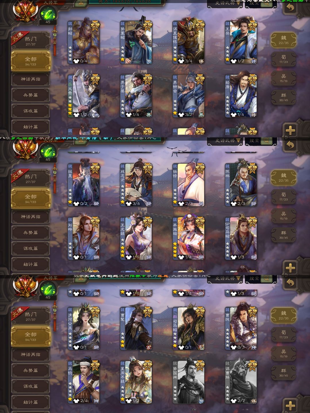 超稀有游戏动态背景94史诗势魏延友诸葛势于吉势太史慈新新巨头齐全谋关羽谋诸葛曹髦司马昭动张奋天宫齐全十常侍神司马懿曹髦谋关羽神郭嘉神甘宁刘焉势董昭
