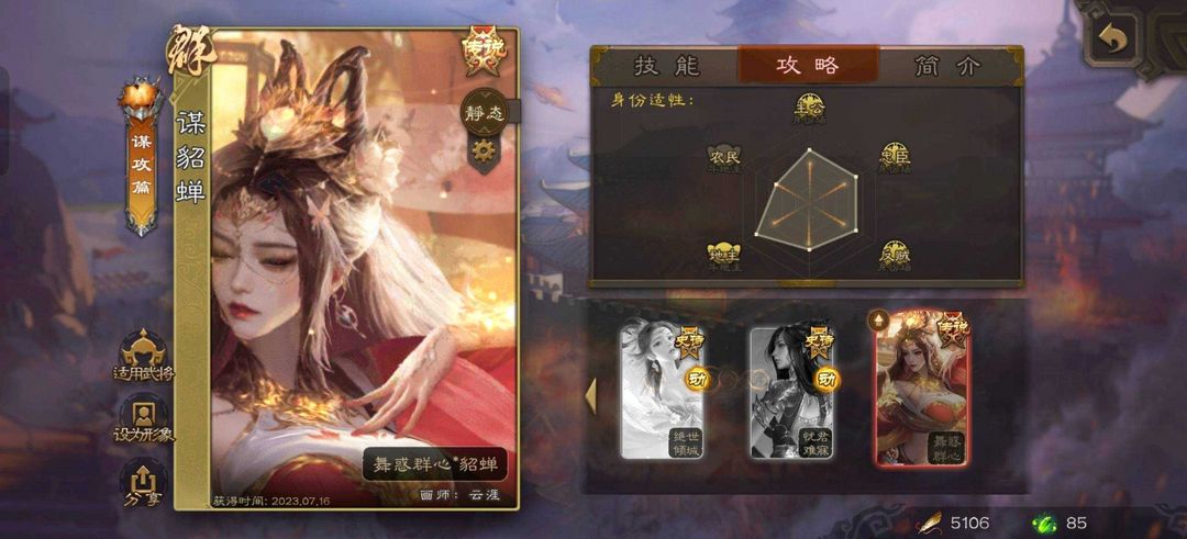 豪华武将多,4.5星强度以上武将就有以下:动皮文鸯 谋貂蝉 谋黄盖 谋刘备 神孙策 等,都有动皮,超值体验