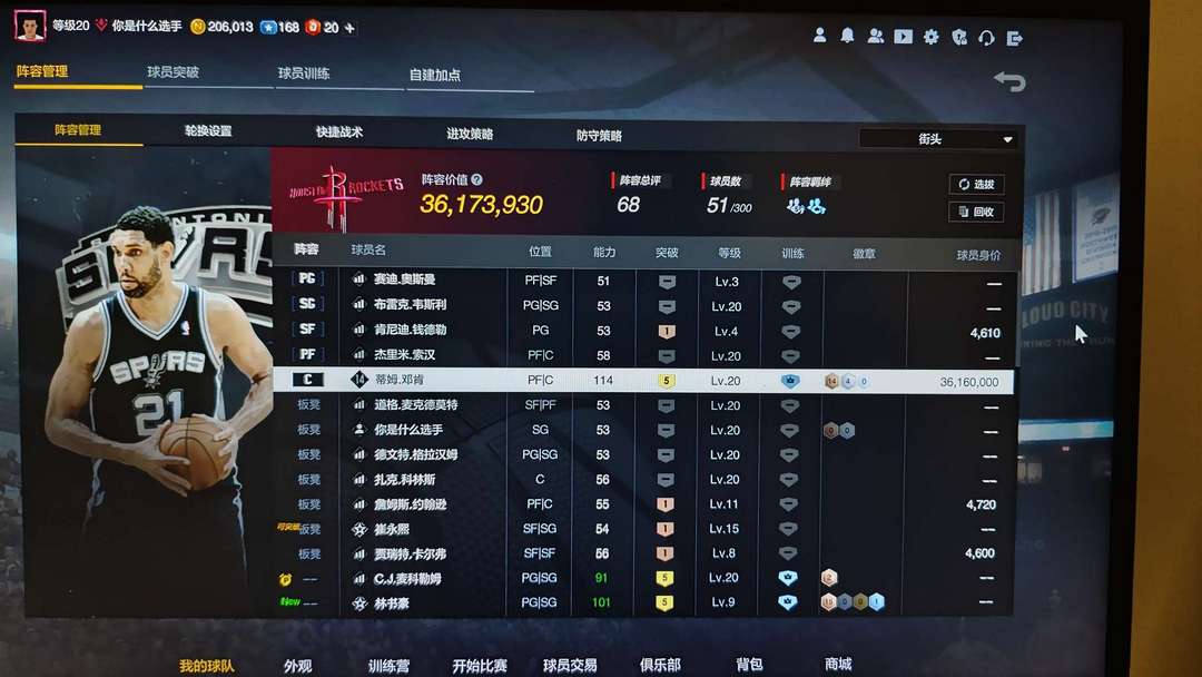 ✔可排位 全明星⭐五突历史邓肯 满特训